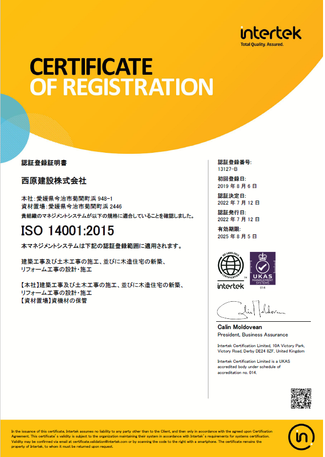 | 昭和28年 1953年4月1日 | 西原建設(株)設立(代表取締役 西原 通忠 資本金50万円) |